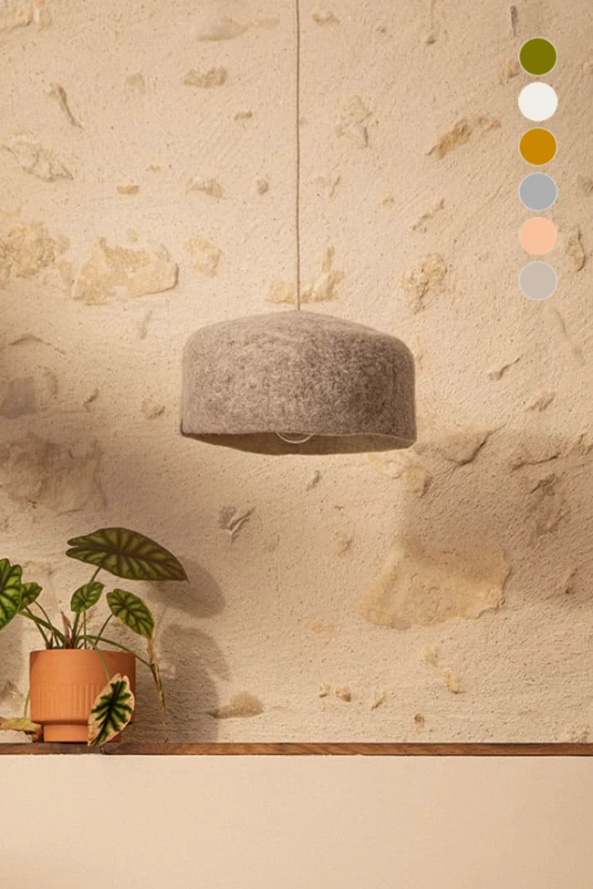 De cet abat-jour en feutre émane une lumière douce et feutrée. Suspendu dans une entrée, un séjour ou une chambre, vous apprécierez autant ses couleurs que l’atmosphère chaleureuse qui s’en dégage. Le + : Une lumière tamisée qui apaisera corps et esprit ! Entretien Aspirer ou brosser. En cas de tâche, utiliser une éponge humide et du savon ou un détachant adapté. Non lavable en machine. Fabrication au Népal