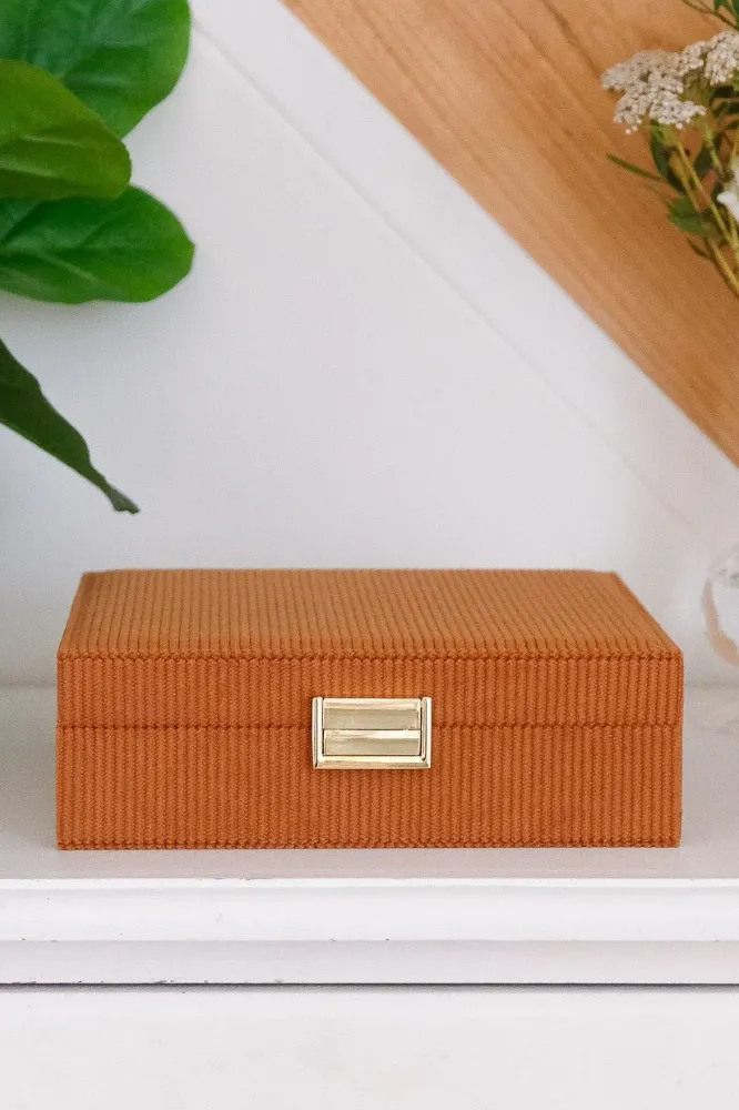 Boîte à bijoux ‘Anne’ en velours côtelé Camel | MAISON SCARLETT