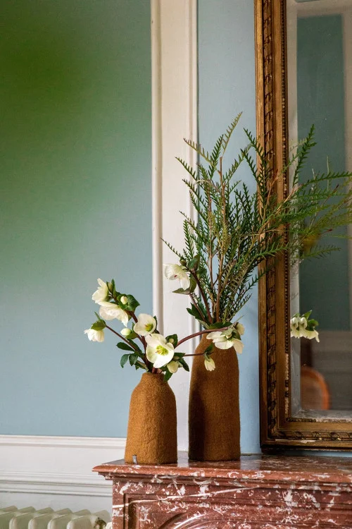 Le cache-vase Cloche uni MUSKHANE en laine feutrée, réalisé par les artisanes népalaises, enveloppe vos bouquets d’une élégance discrète en dissimulant leurs contenants. Sa finition unie sublime les compositions florales avec simplicité, tandis que le feutre apporte une chaleur naturelle à votre décoration. Ce cache-vase, disponible en deux tailles, s’intègre harmonieusement dans tous les intérieurs pour créer une ambiance douce et épurée. Disponible en deux tailles, dont ici la version S, les cache-vases Cloche sont particulièrement jolis à combiner pour un effet décoratif harmonieux et unique. Cliquez ici pour découvrir la taille M. Fabrication au Népal