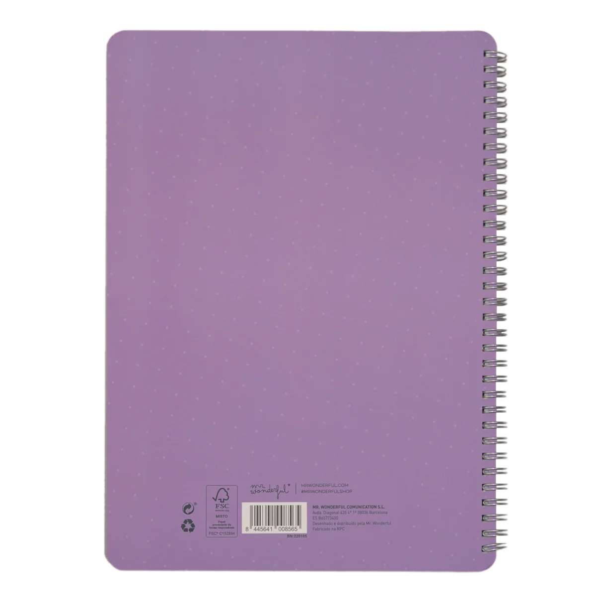 Caderno de tamanho A4, com encadernação em espiral, capa dura e 80 folhas quadriculadas de papel de 80 g no seu interior. Para além disso, contém uma folha com divertidos autocolantes.