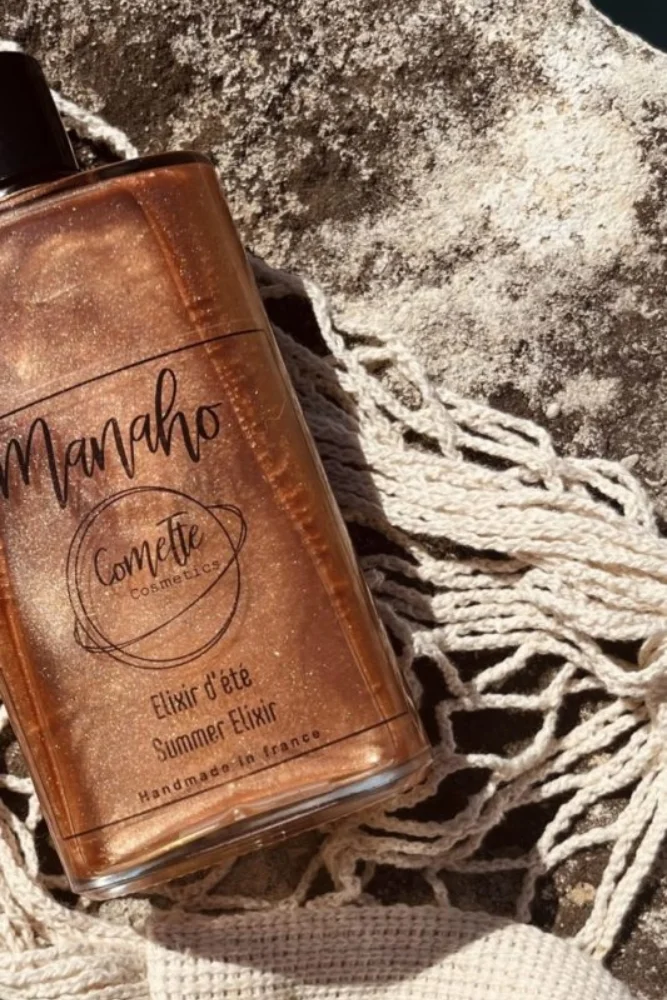 Cet élixir est une l’huile bronzante scintillante ! Manao illumine votre peau, la protège et l’hydrate, mais elle facilite aussi le bronzage et unifie le teint, qui est sublimé et nourrit tout au long de l’été ! Conseils d’utilisation : Bien agiter le flacon avant de vaporiser sur la peau pour disperser les paillettes, puis vaporiser sur la peau directement. Mouflette a testé : Manaho c’est Tahiti dans une bouteille. Remplace la fameuse huile brillante d’une certaine marque dont nous tairons le nom. Difficile de croire qu’il n’y a pas de parfum dans cette huile scintillante ! Avant, nous craquions…