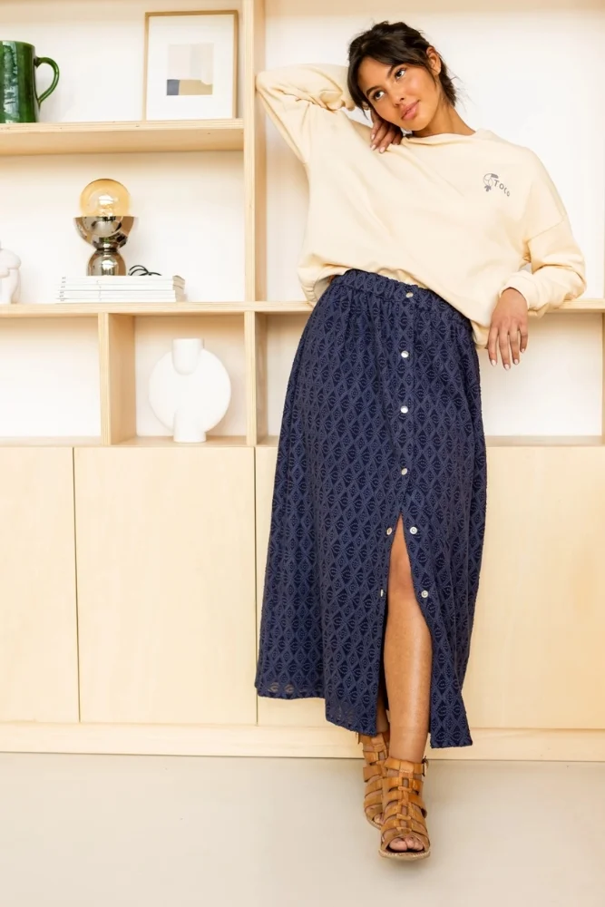 Cette jupe APACHES est très agréable à porter ! Légère et en viscose brodée vous pourrez la porter facilement pour toute occasion : en été avec un joli top et en automne avec un beau foulard, que vous retrouverez en cliquant ici ! Fabrication en Inde