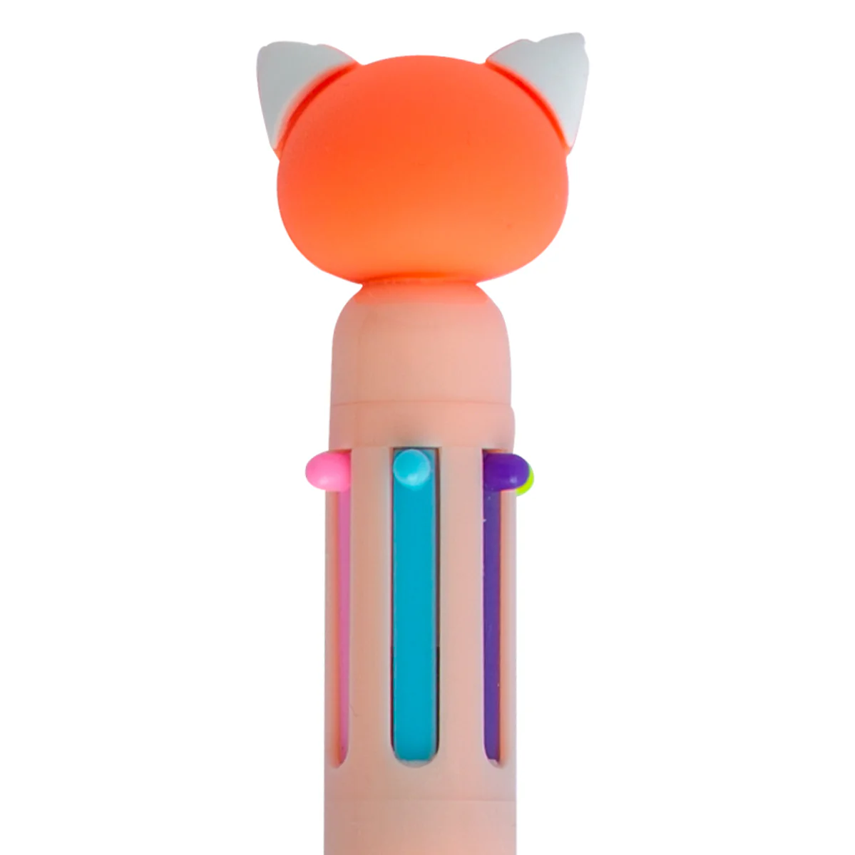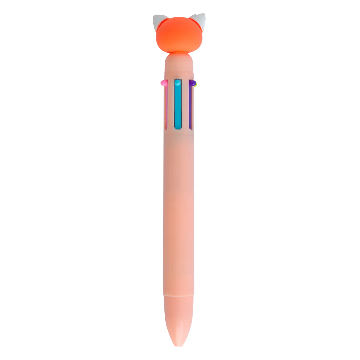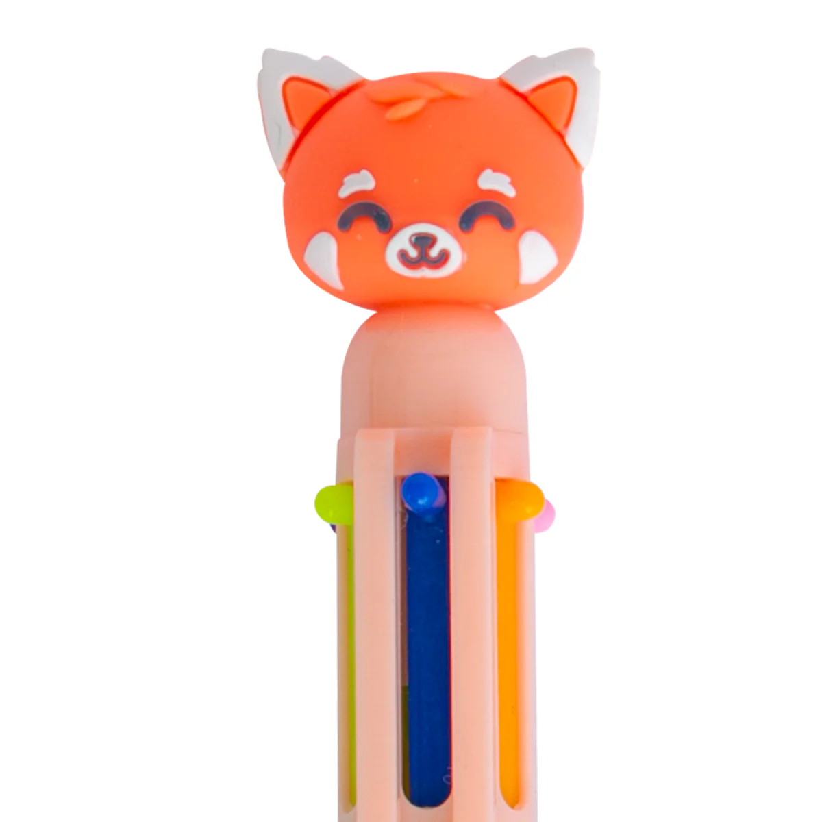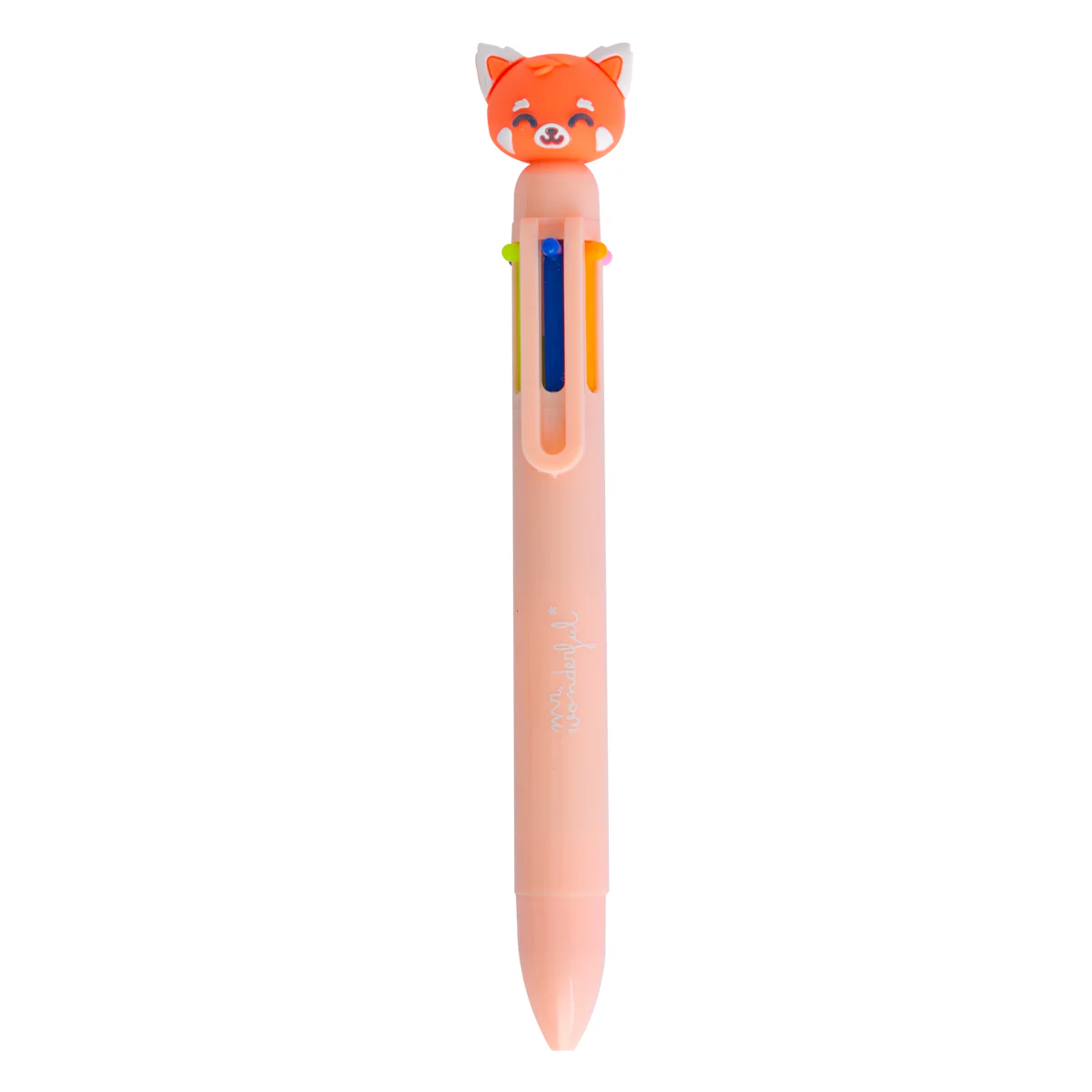 Bolígrafo multicolor, cuenta con?un?panda rojo Mr. Wonderful en?uno?de?sus?extremos. Cuenta con 6 colores distintos en las tintas: azul oscuro, azul claro, verde, naranja, lila y rosa.