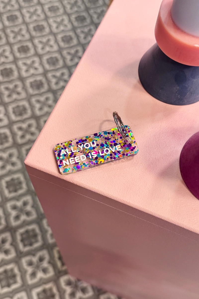 Porte-clés pailleté ‘All you need is love’ Violet-Or-Vert | PLUS DE LOVE