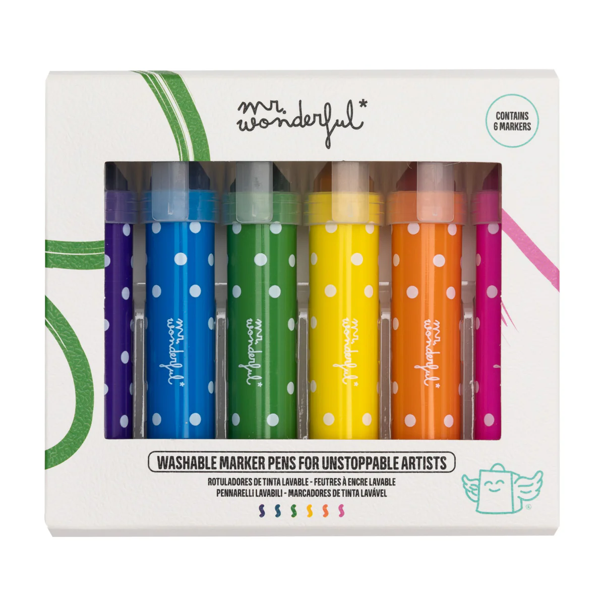 Set de 6 rotuladores con tinta lavable: si se mancha la ropa, se puede lavar.