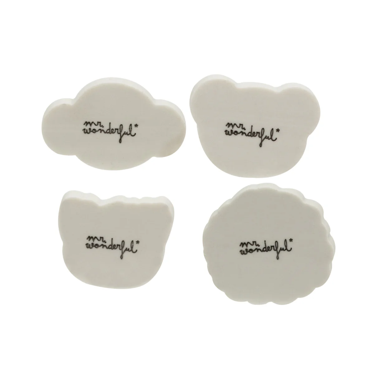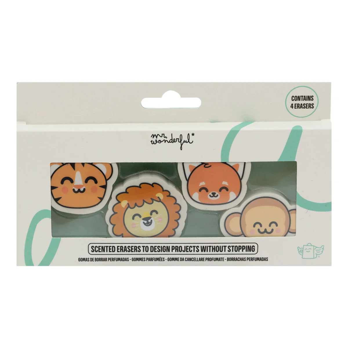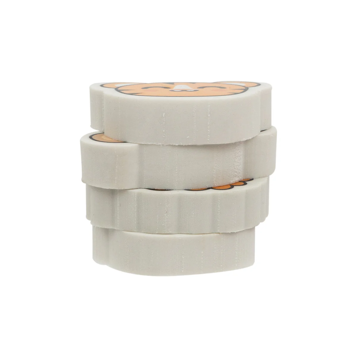 Cada una de ellas tiene forma de uno de los personajes que encontramos en nuestros bolígrafos borrables Bo-Bo: Felipe el tigre, Simón el león, Wondo el panda rojo y Bono el mono.