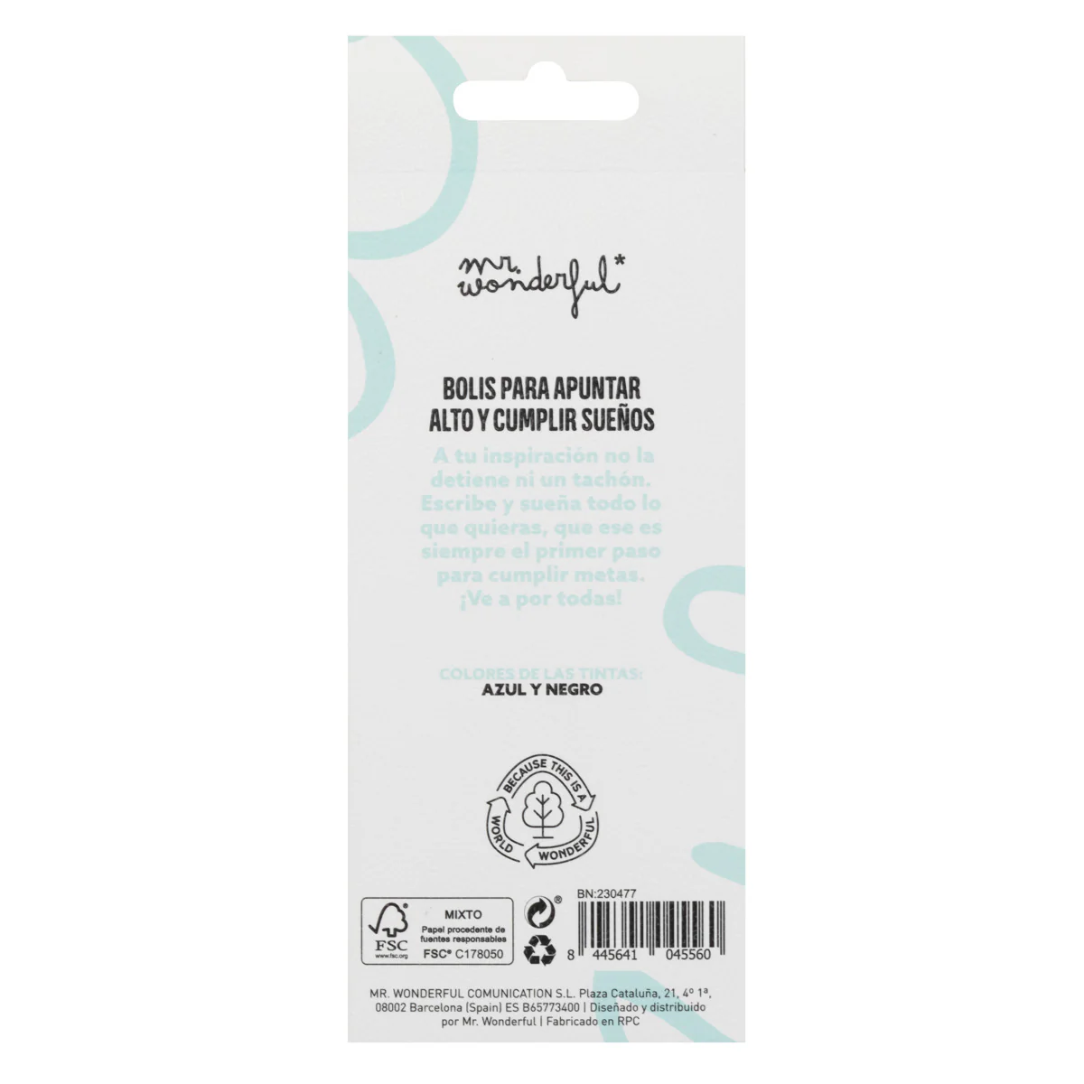 Set de 3 bolis Mr. Wonderful con mensaje. Mensajes de los bolígrafos: Dándole vueltas al coco Todo lo que me hace soñar Apunto maneras La combinación perfecta de tintas negra y azul. Con nuestro set de bolígrafos, tu creatividad no tendrá límites. ¡Tres mensajes, infinitas ideas! Características:Color de la tinta: azul y negra.