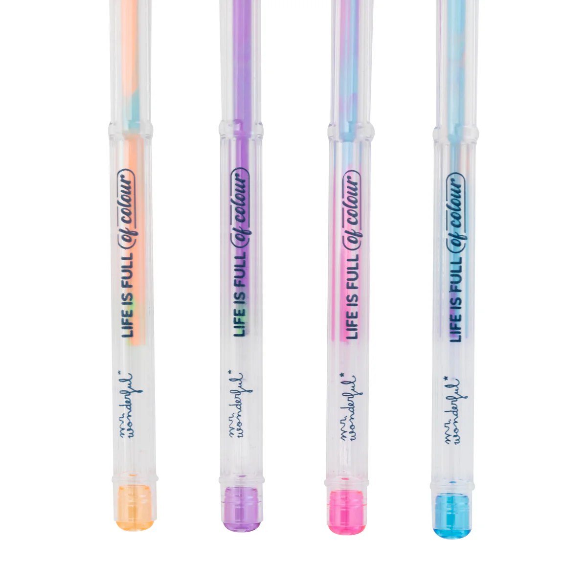 Set de 4 bolis multicolor de neón, que cambian de color al escribir.