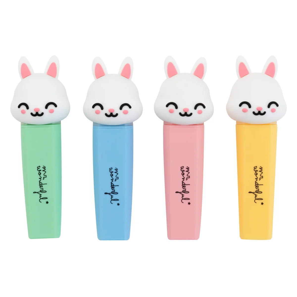 Set de 4 subrayadores en tonos pastel, con tapón en forma conejito Mr.