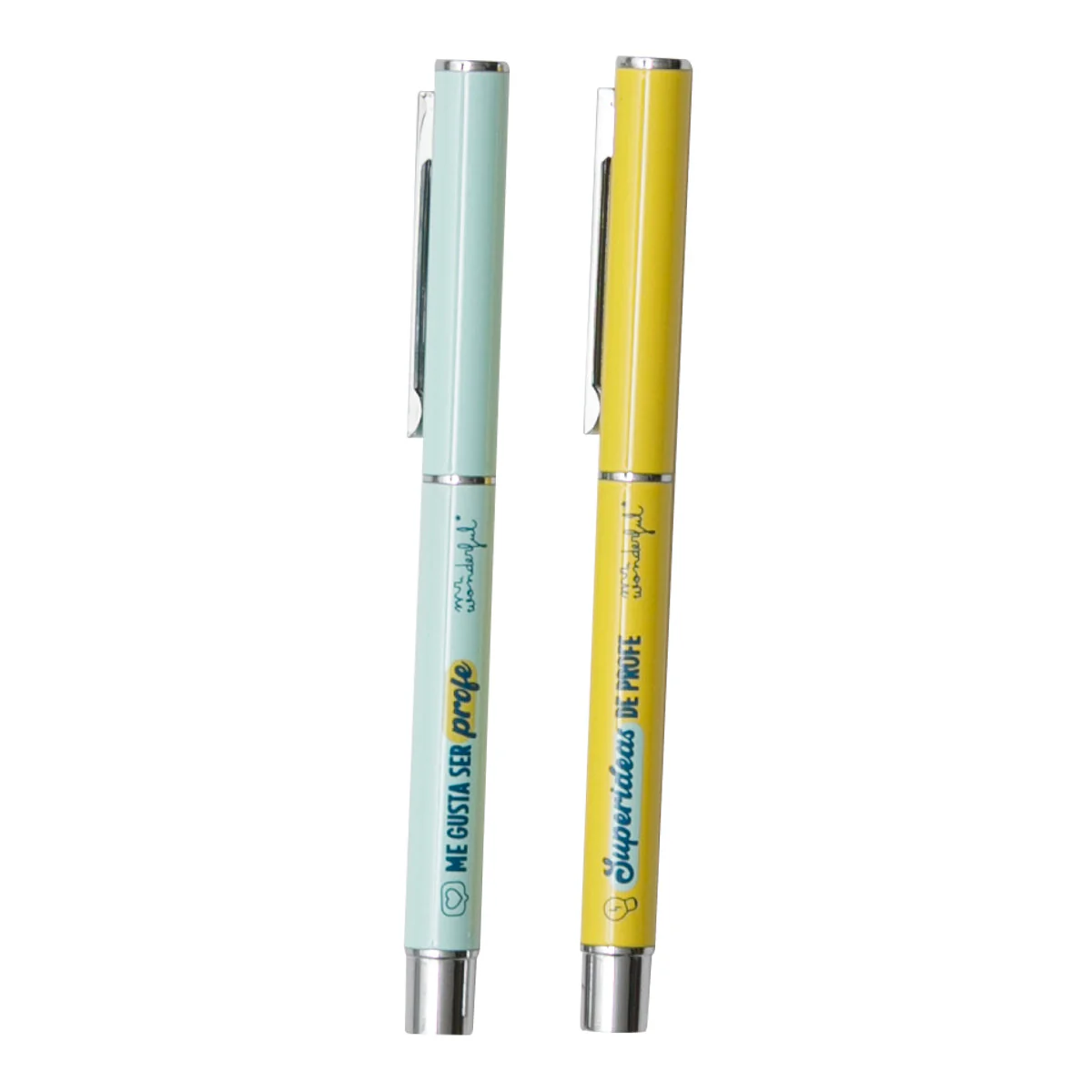 Set de dos bolígrafos con mensaje dirigido a profes. Tinta de los bolis: azul y negra, respectivamente.
