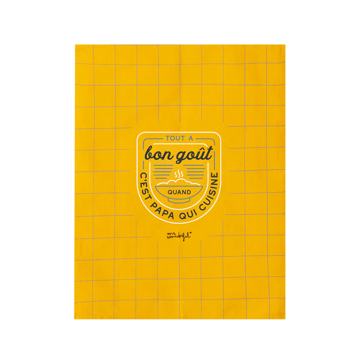 – Message sur le torchon : Tout a bon goût quand c’est papa qui cuisine