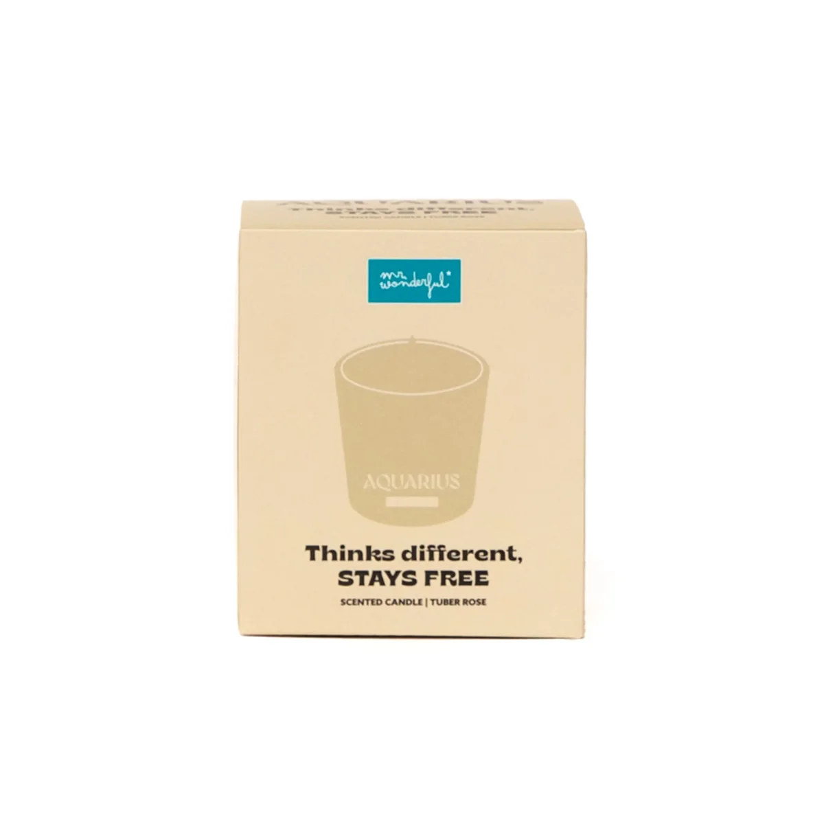 Vela perfumada con aroma a Tuber rose. Se presenta en un envase de vidrio en el que se ilustra el nombre en inglés y la constelación del signo zodiacal de Acuario.