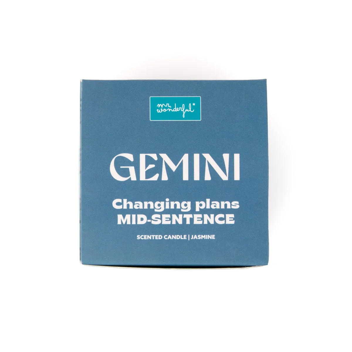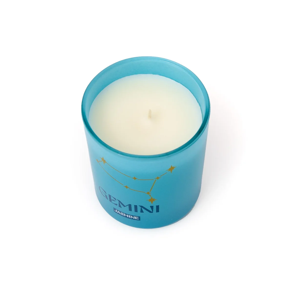 Vela perfumada con aroma a Jasmine. Se presenta en un envase de vidrio en el que se ilustra el nombre en inglés y la constelación del signo zodiacal de Géminis.