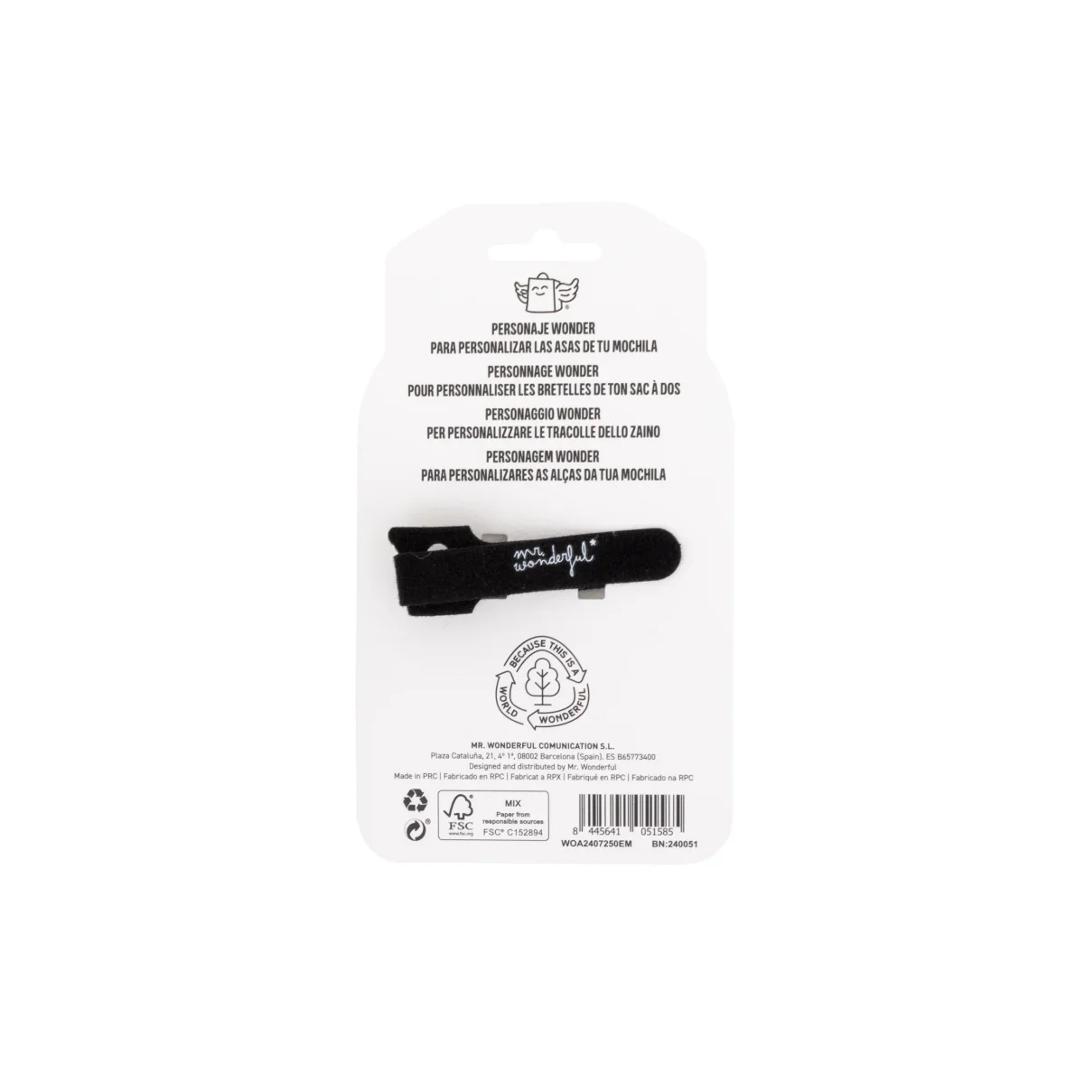 Personaje Mr. Wonderful con enganche trasero de velcro, ideales para personalizar las asas de las mochilas o bolsos.